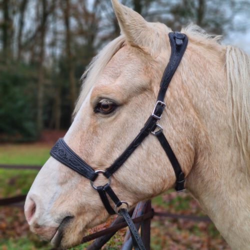 The special crownpiece ensures the ears remain free from pressure, and the throat latch is designed to keep the cheek pieces away from the eyes. Both the crownpiece and the noseband are softly padded and oval-shaped to provide optimal comfort. The crownpiece is adjustable over the horse’s poll, allowing the bridle to be customized to fit each individual horse. Thanks to the uniquely designed crownpiece, throat latch, and cheek pieces, the bridle sits securely on the horse’s head. As a result, a browband is not needed with this bridle.