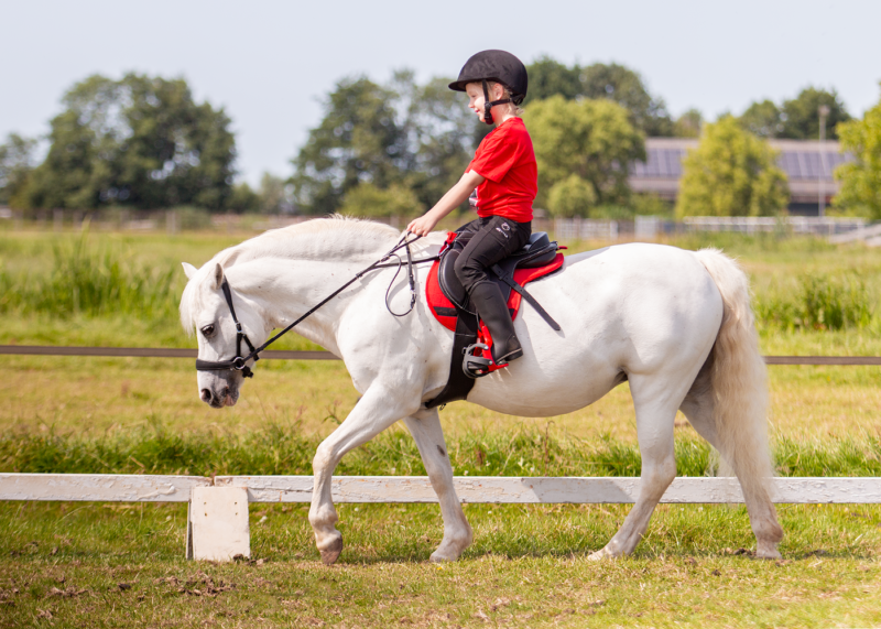 The integrated handgrip offers young riders added balance and confidence while helping them maintain a consistent rein length. The adjustable design ensures both the handgrip and the space for the pony’s neck can be set to the correct length. These reins also help prevent riders from being pulled out of the saddle by strong ponies.