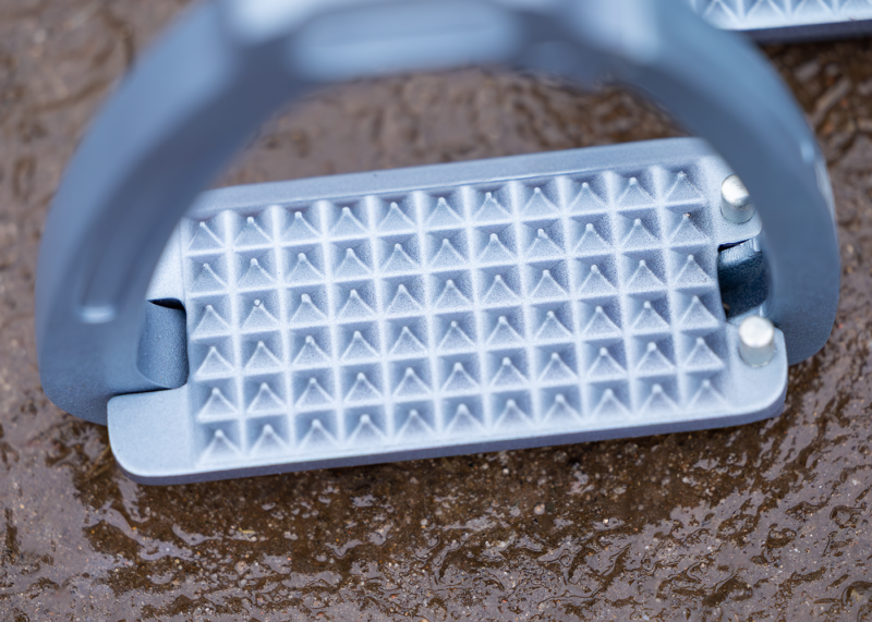 The Flairs feature a smart safety release mechanism on the outer side. When unexpected pressure is applied, the side of the stirrup opens so the rider’s foot can immediately come free in the event of a fall. This significantly reduces the risk of getting caught in the stirrup and enhances overall riding safety. During regular use, the mechanism remains secure, ensuring a stable and supportive ride.