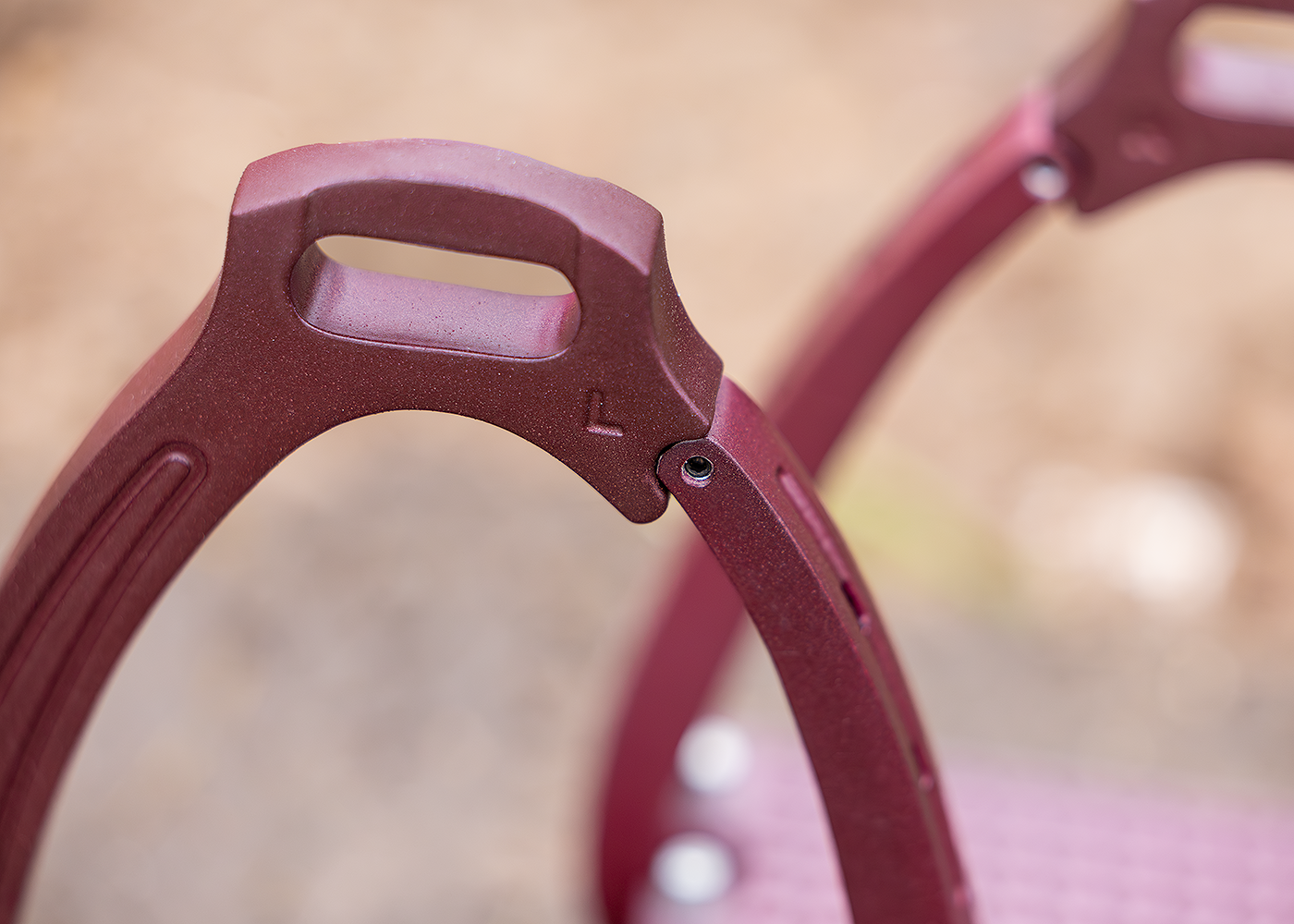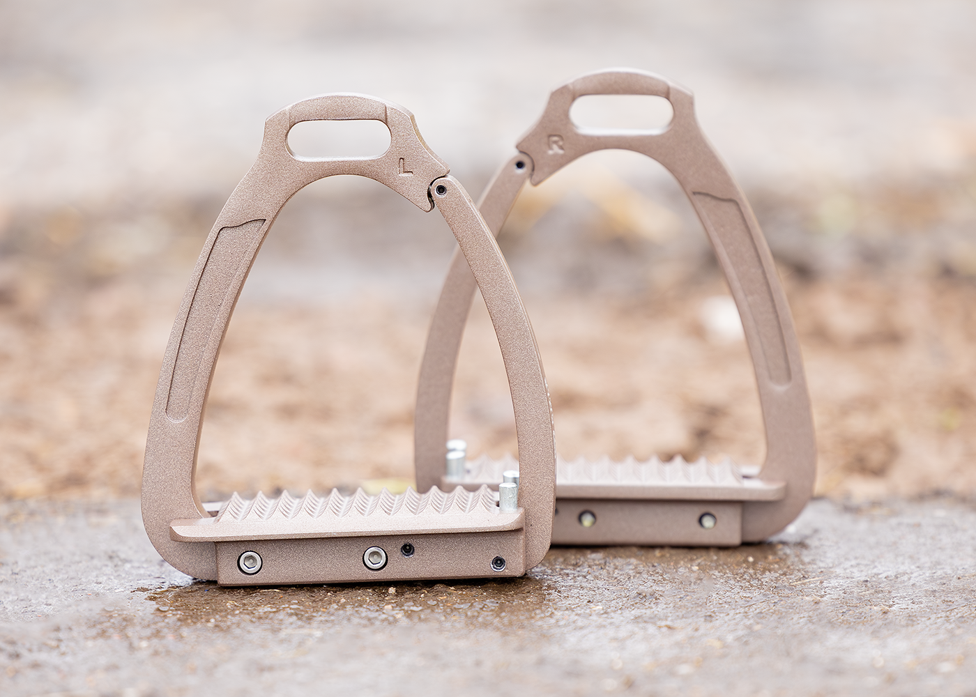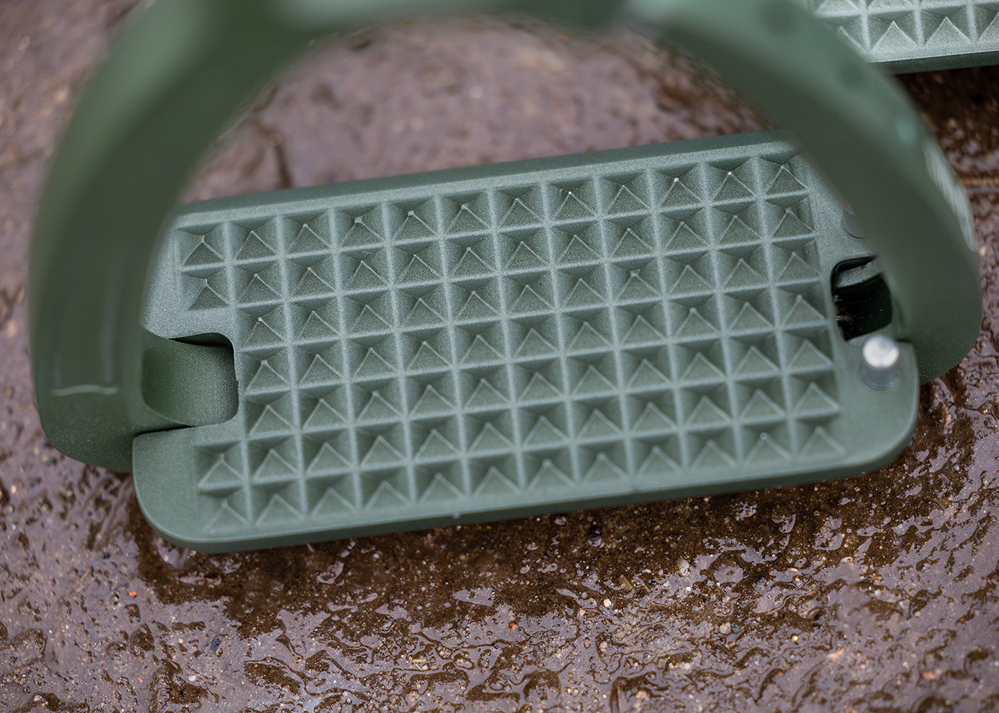 The Flairs feature a smart safety release mechanism on the outer side. When unexpected pressure is applied, the side of the stirrup opens so the rider’s foot can immediately come free in the event of a fall. This significantly reduces the risk of getting caught in the stirrup and enhances overall riding safety. During regular use, the mechanism remains secure, ensuring a stable and supportive ride.