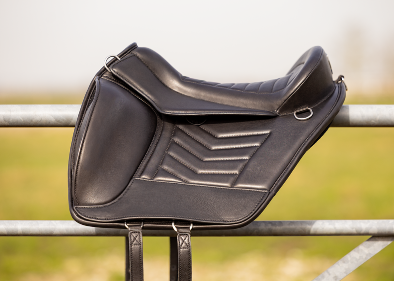 What distinguishes the Fusion, besides the shorter flaps, are the baroque-shaped panels. These panels provide a larger support surface and create additional stability and pressure distribution under the pad. This results in a calm and comfortable fit, even on horses with a broader back or more rounded ribcage.
