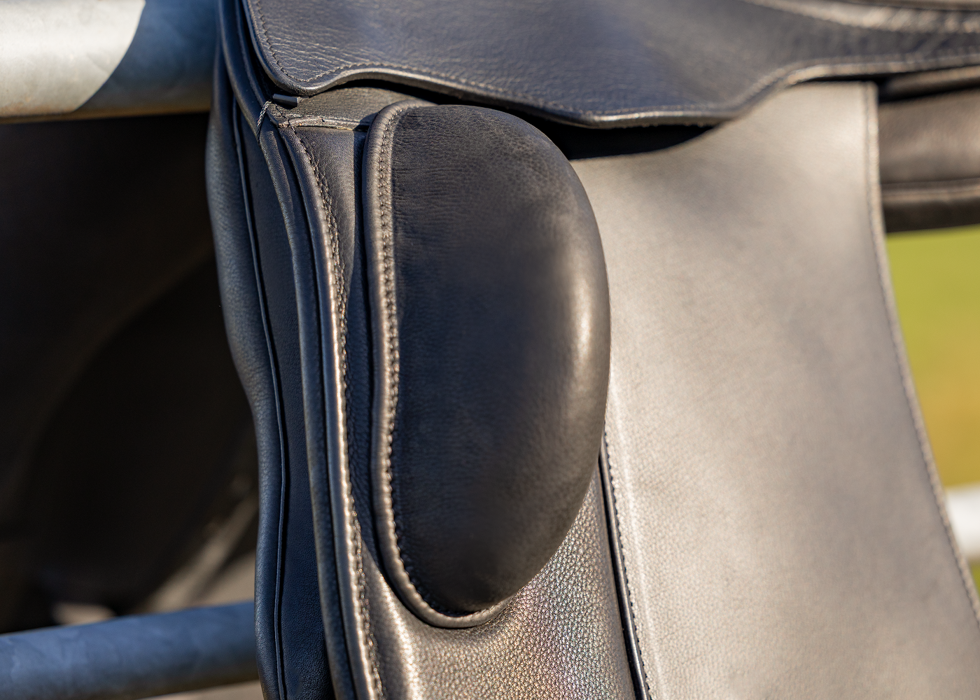The leather panels are filled with resilient synthetic wool. Thanks to the wide gullet channel and broadened panels, optimal shoulder freedom, pressure distribution, and spinal clearance are achieved. The panels can easily be reflocked or adjusted to suit the individual horse.