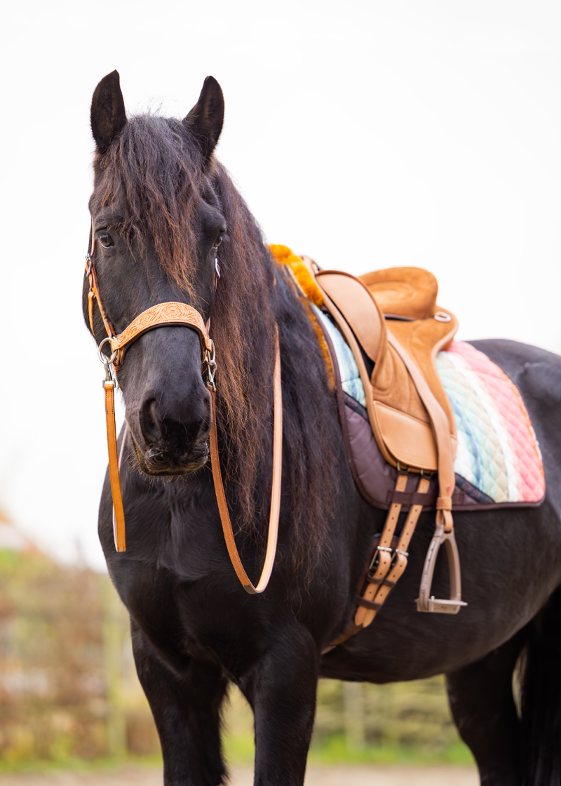 Hoogwaardige Merinowol is technisch gezien een van de meest geavanceerde natuurlijke materialen ter wereld. Doordat in plaats van geschoren en geweven wol het volledige lamsvachtvel wordt gebruikt, worden de voordelen van dit materiaal optimaal benut. Daarom raden wij altijd aan om de wol direct op de rug van het paard te gebruiken.