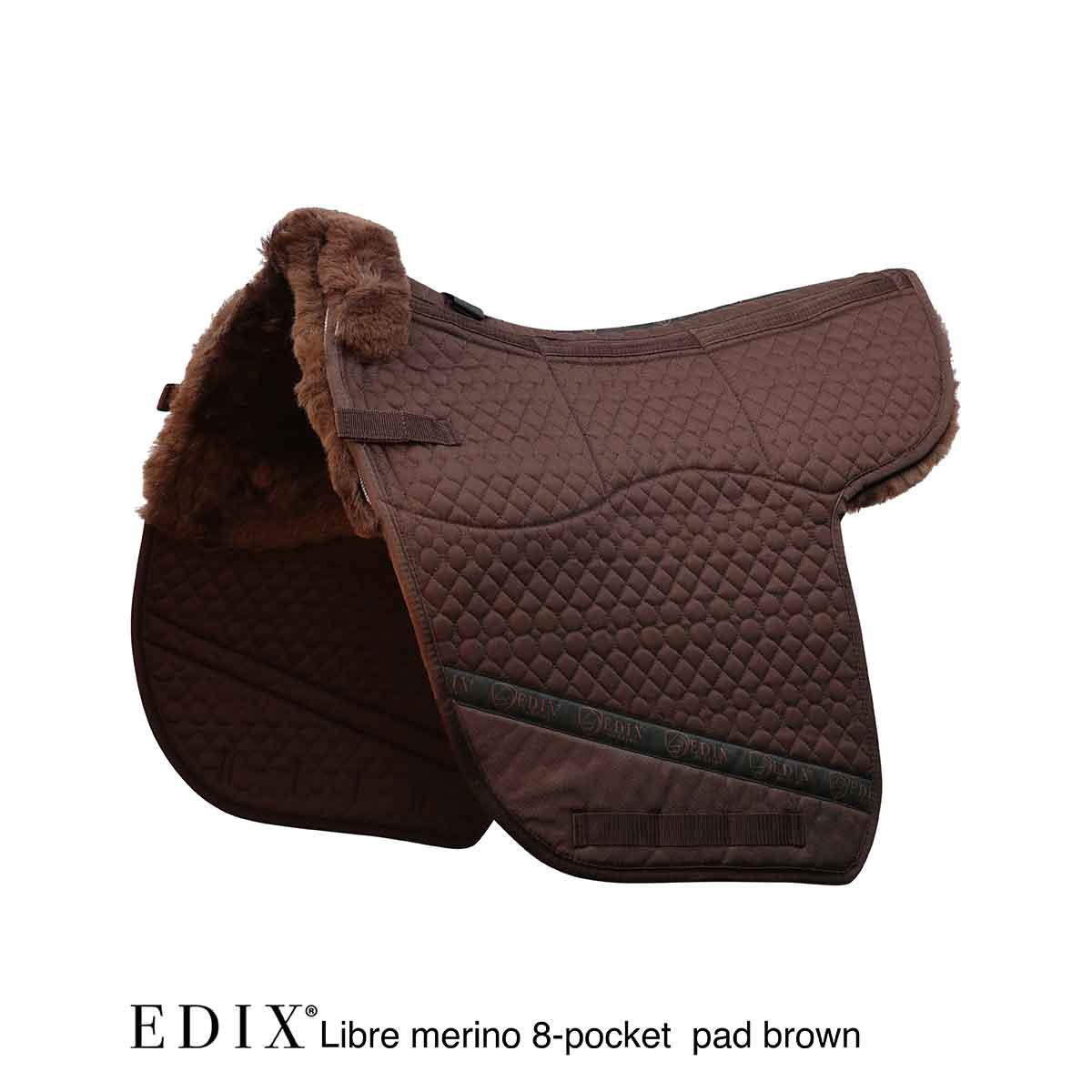 De EDIX Libre pad is een hoogwaardige dressuurpad voor boomloze zadels, ontworpen om optimale drukverdeling, comfort en wervelkolomvrijheid te bieden voor het paard. Door het gebruik van duurzame materialen en een zachte Merino lamsvacht combineert deze pad functionaliteit met natuurlijke prestaties.