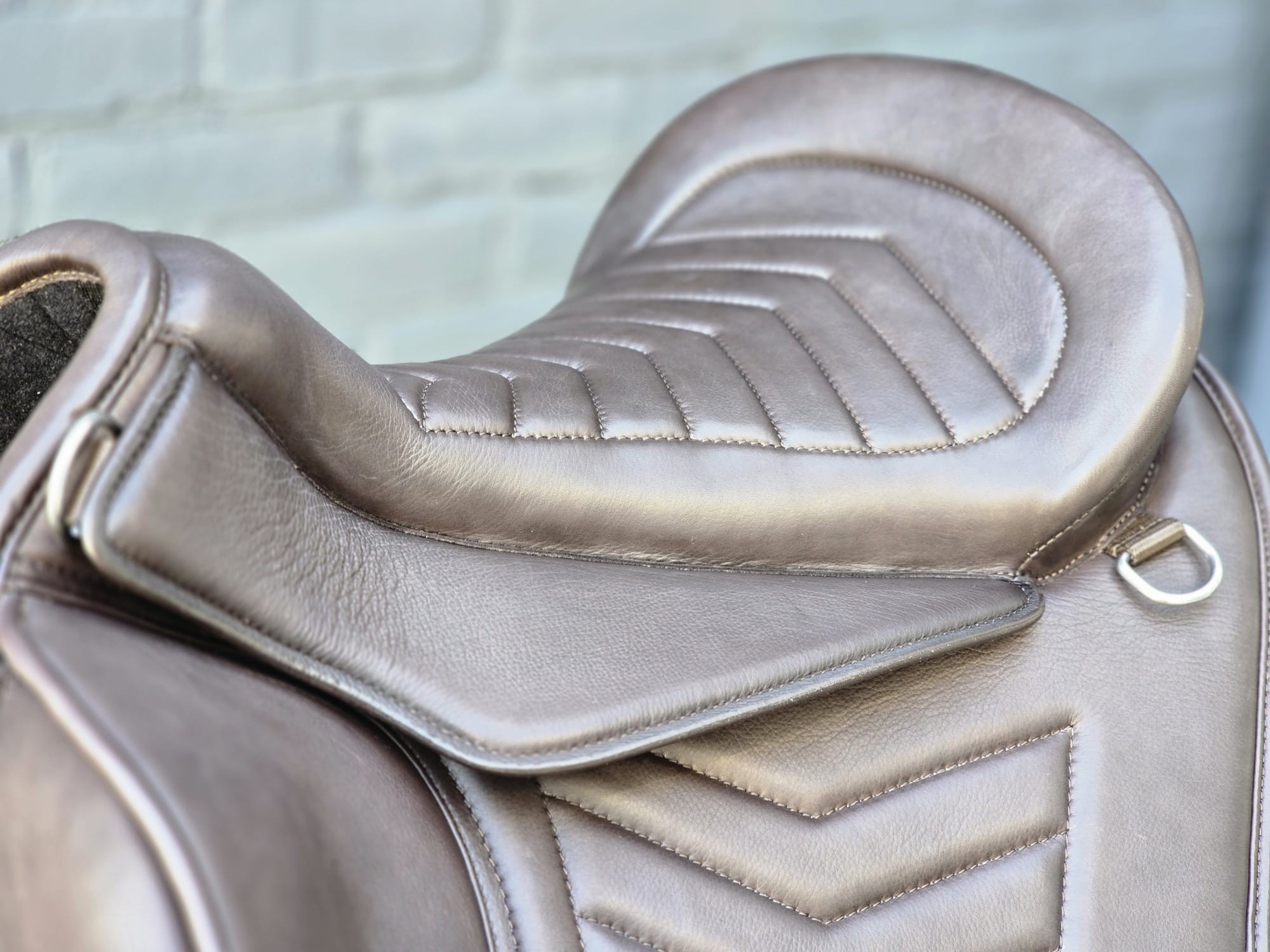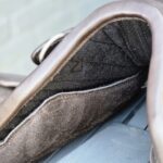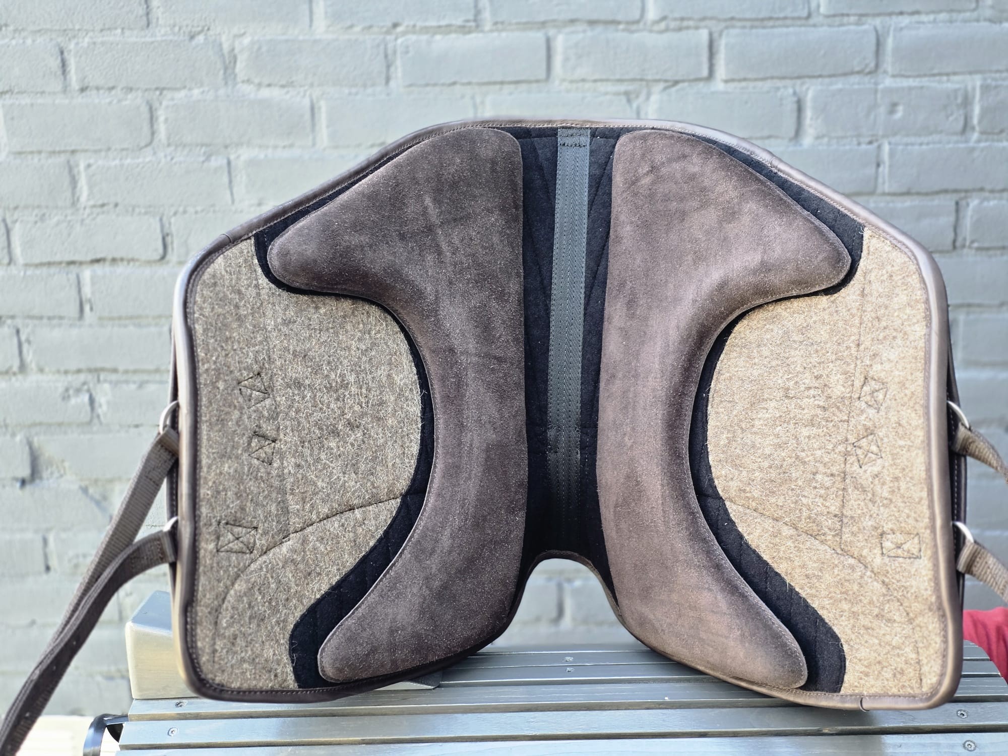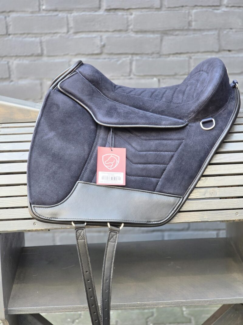 De beugelophanging is strategisch geplaatst om de druk gelijkmatig te verdelen. Door deze plaatsing wordt het gewicht van de ruiter verdeeld over meerdere lagen binnen de constructie van de pad.
