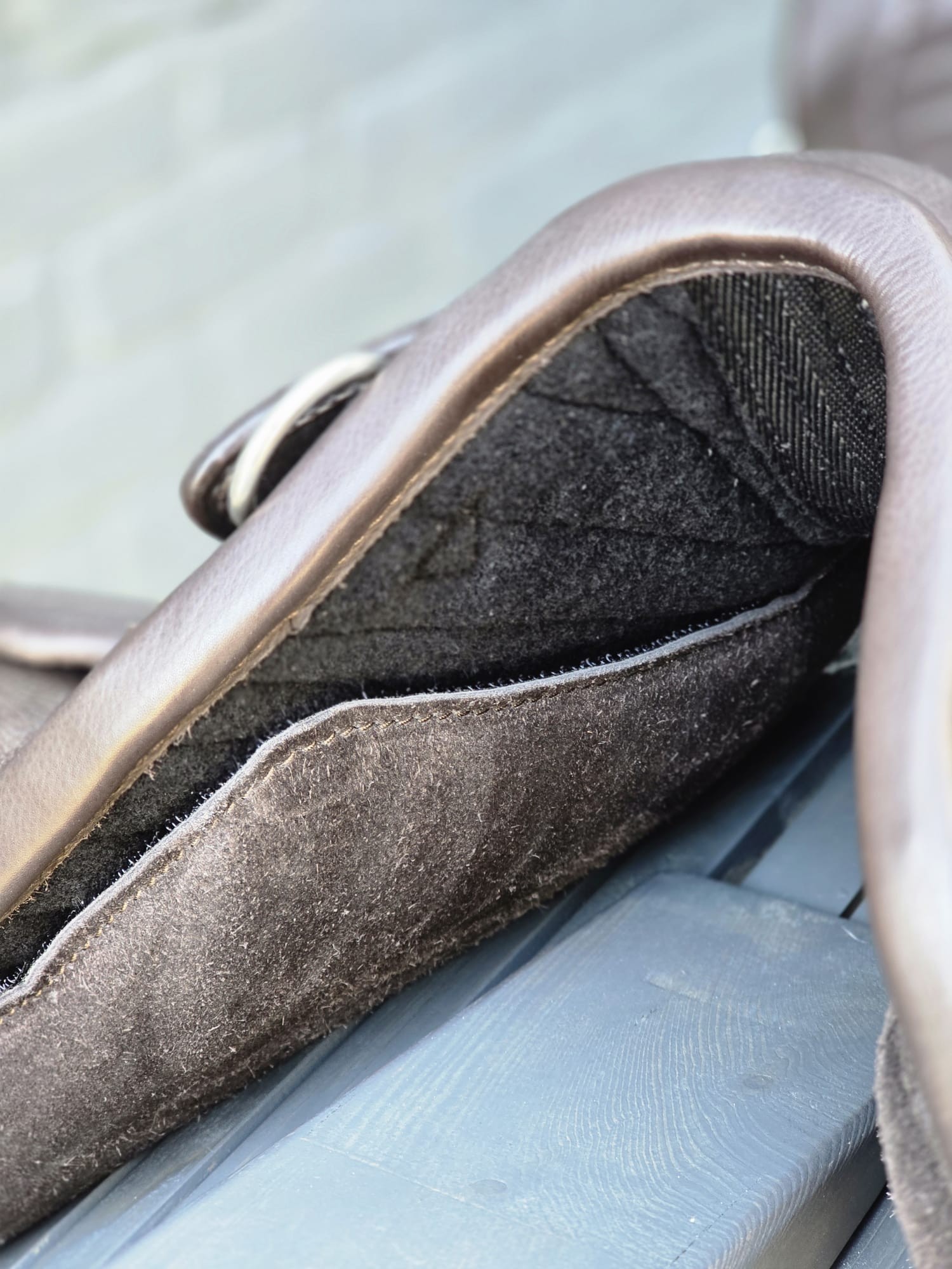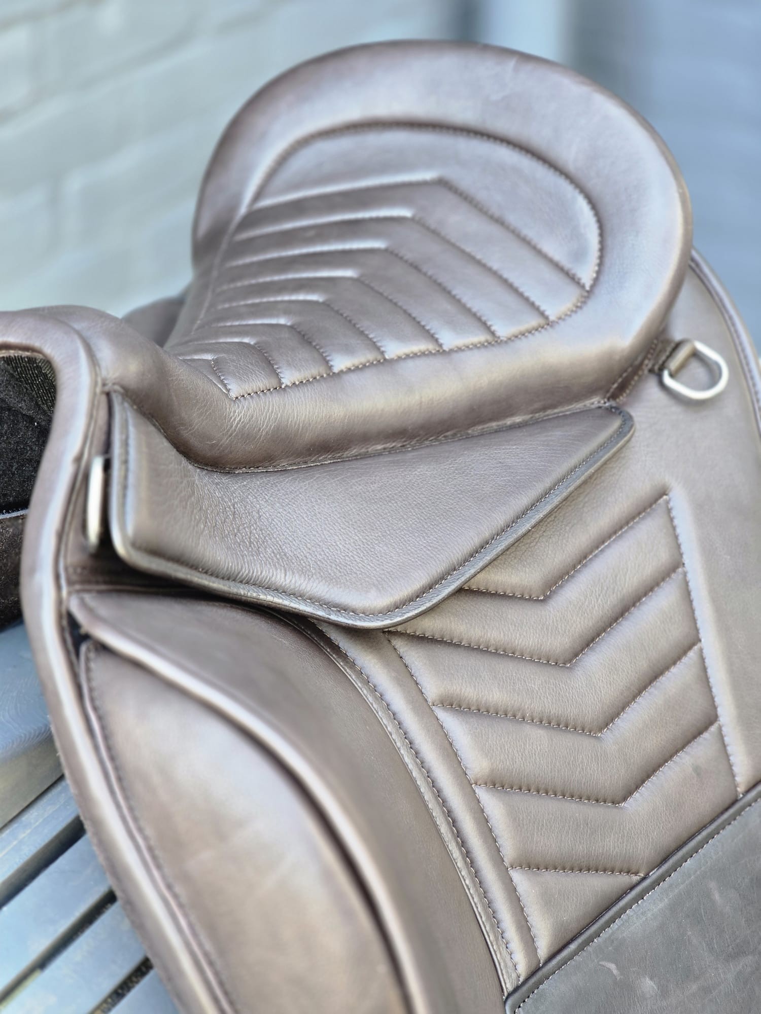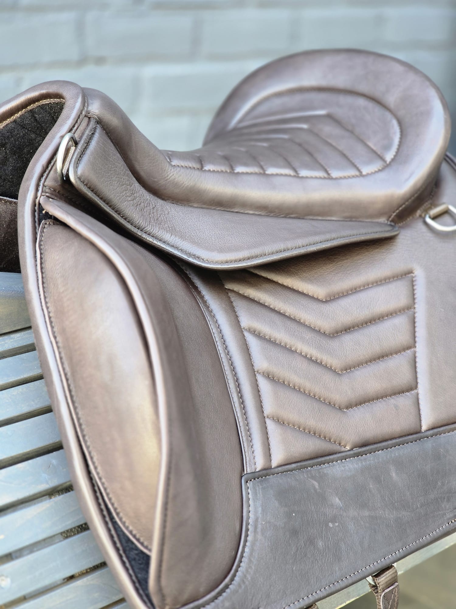 De beugelophanging is strategisch geplaatst om de druk gelijkmatig te verdelen. Door deze plaatsing wordt het gewicht van de ruiter verdeeld over meerdere lagen binnen de constructie van de pad.