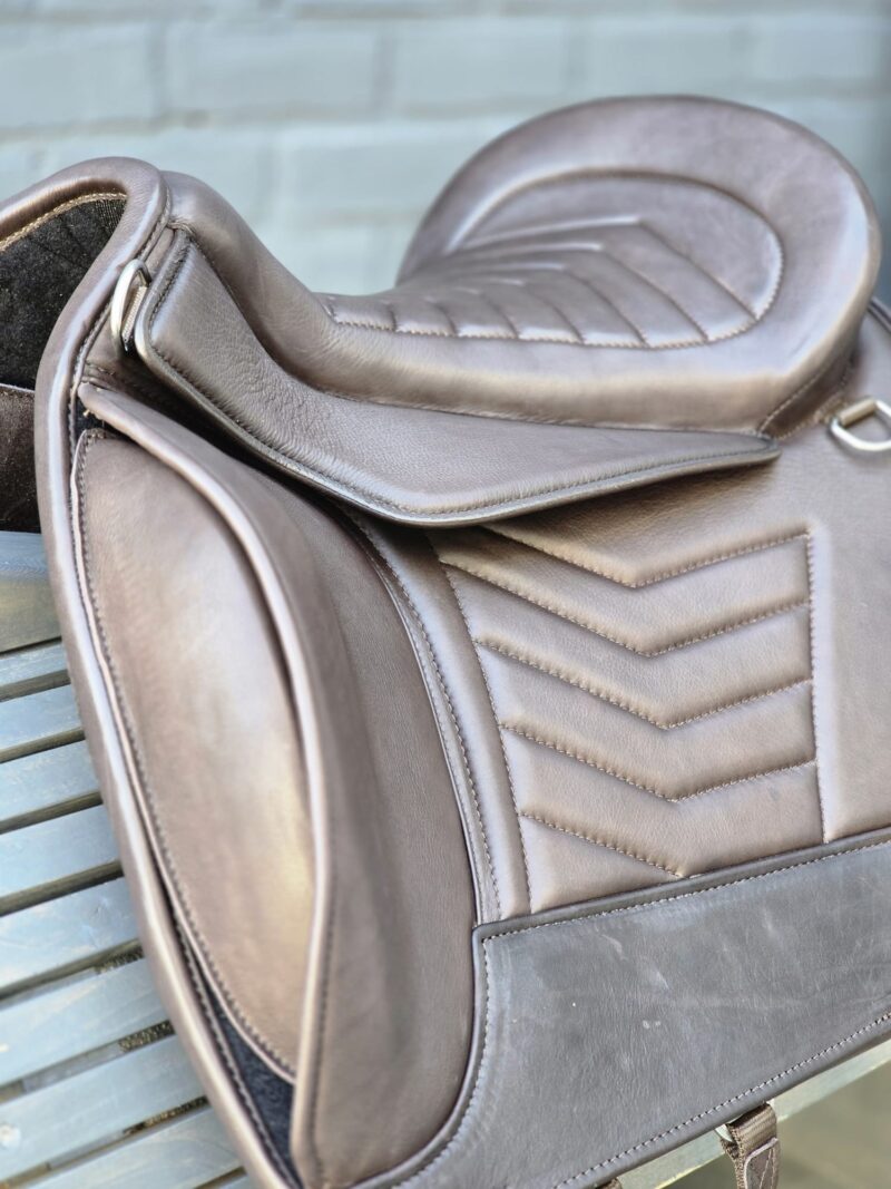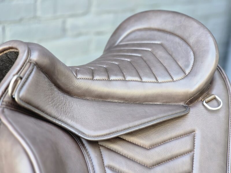 The Kali is designed on our Flex tree, offering lateral and diagonal flexibility while maintaining structural stability. This saddle provides a deep, secure seat and defined leg support with close contact to the horse. The Kali stands out with its glitter cantle and croco patent details.⁠