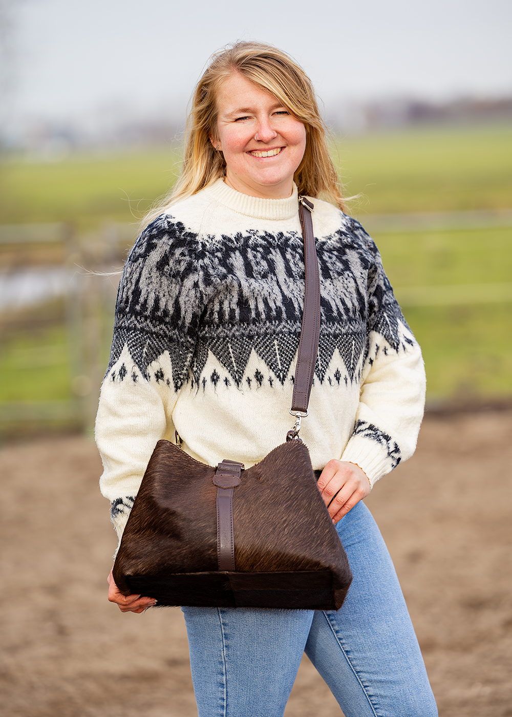 De tas kan zowel over de onderarm als schouder worden gedragen.