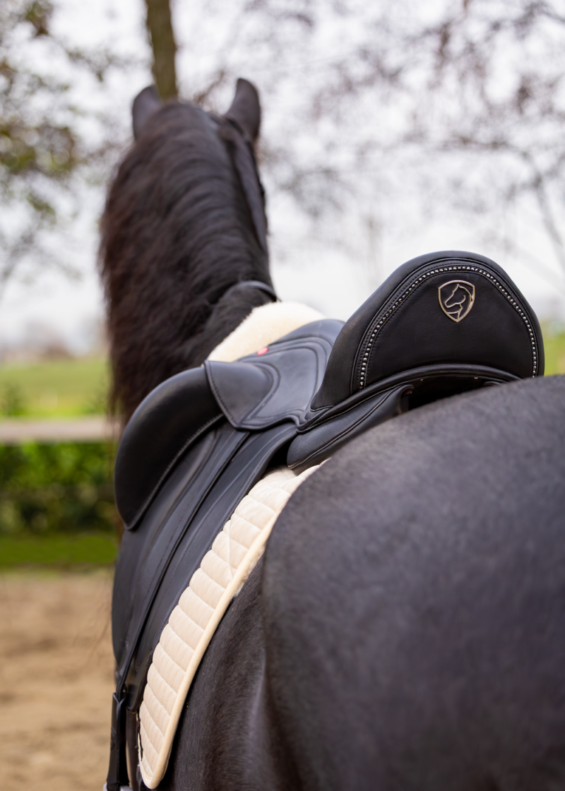 Vanwege de aanpasbaarheid van dit zadel raadt EDIX aan het zadel aan te schaffen in overleg met een erkende EDIX-dealer of zadelpasser. Deze kan je adviseren over de juiste panelen voor jouw paard en de juiste dijbeenblokken voor jouw zit. De dealer controleert bovendien de uiteindelijke pasvorm en positie van de blokken op maat. Voor optimale stabiliteit tijdens het rijden adviseert EDIX het gebruik van een anatomische of crescent gedeeltelijk elastische singel. Deze driedelige singels passen zich aan aan de ademhaling en beweging van het paard, zorgen voor een constante, gelijkmatige druk, en ontzien tegelijkertijd de borstspieren en singelstoten. Daarnaast raden we aan om gebruik te maken van een EDIX 8-pocket pad, waarbij de drukverdeling en balans van het zadel eenvoudig geperfectioneerd kan worden.