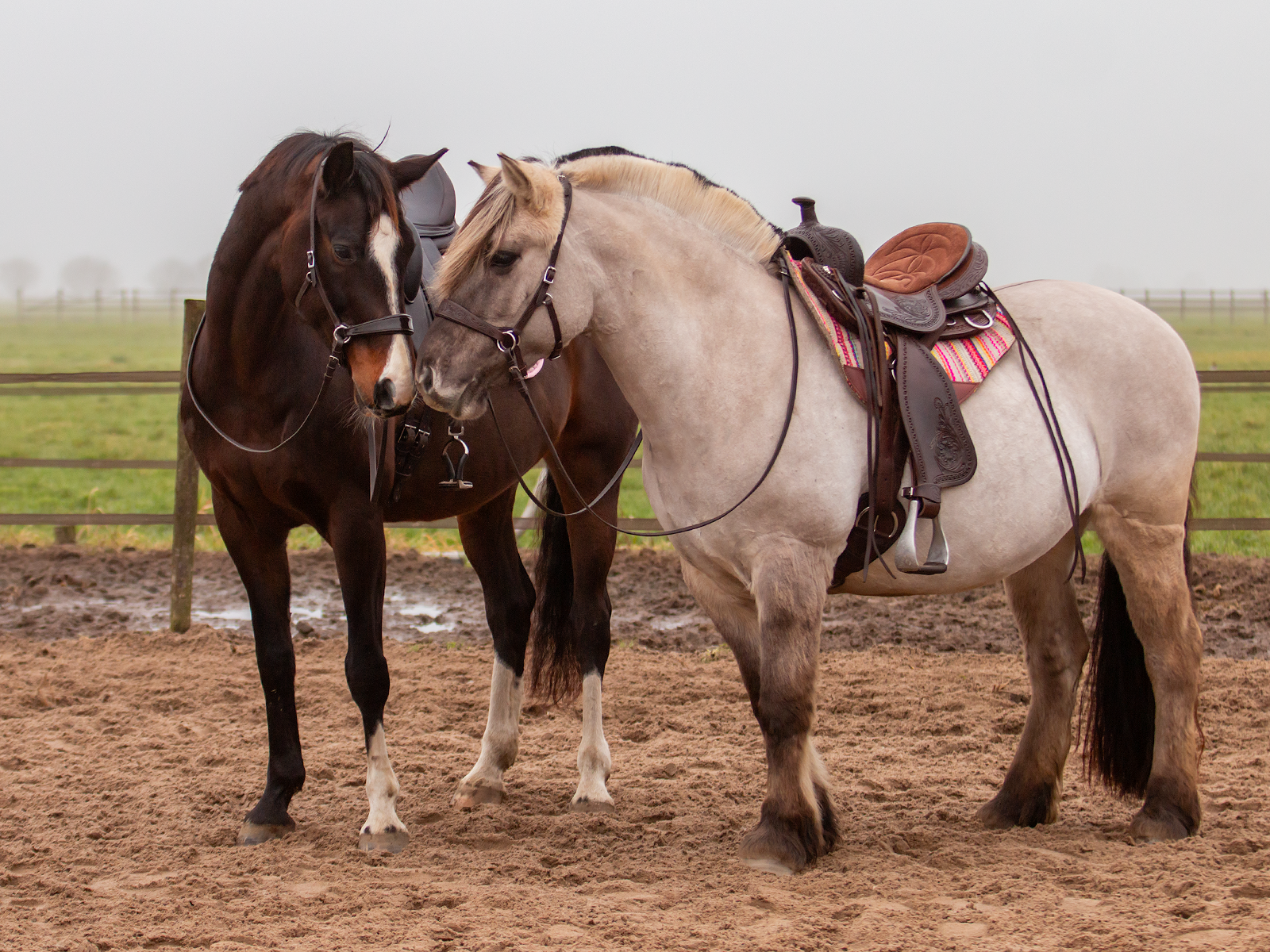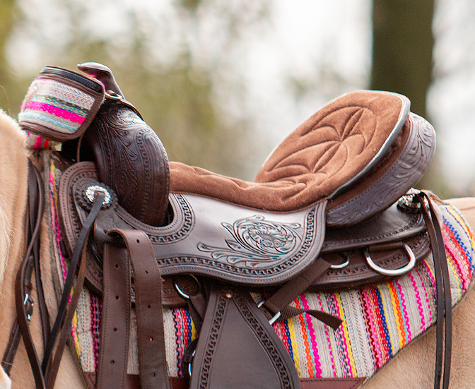 De geweldige twist van het zadel biedt een smalle, comfortabele diepe en veilige zit. De zitting is met schuim gevoerd en afgewerkt met een geborsteld rundleer. De gullet van het zadel kan worden aangepast door de verwisselbare horn te vervangen. Evens zijne in dezelfde stijl als het zadel, Oakley fenders en met leder beklede stijgbeugels.