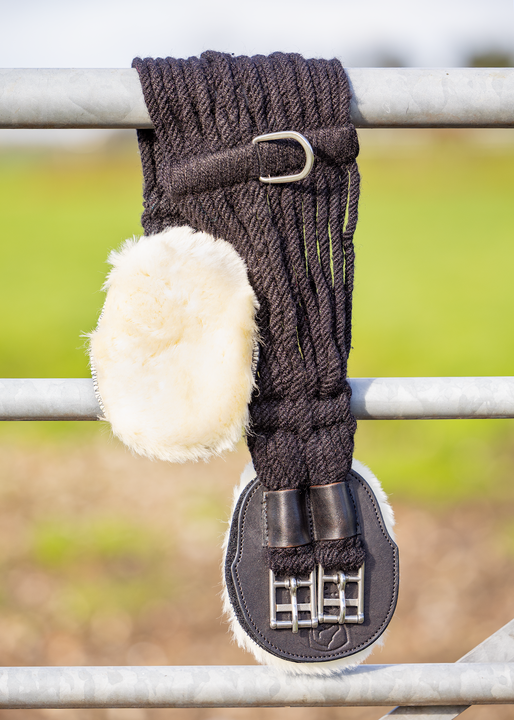 De uiteinden zijn verstevigd met duurzaam Argentijns leer en roestvrijstalen gespen zorgen voor langdurig gebruik. De geïntegreerde ring maakt het eenvoudig om een borsttuig of hulpteugel te bevestigen. Een ideale keuze voor ruiters die waarde hechten aan verfijne materialen en een stabiele ligging van het zadel. De wolstukken aan het uiteinde van de singel kunnen eenvoudig verwijderd worden voor reiniging.