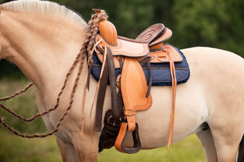 - d-ringen voor bevestiging van een borsttuig en of zadeltas