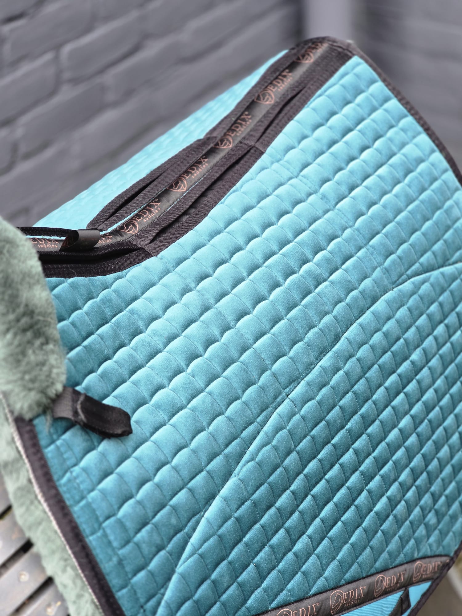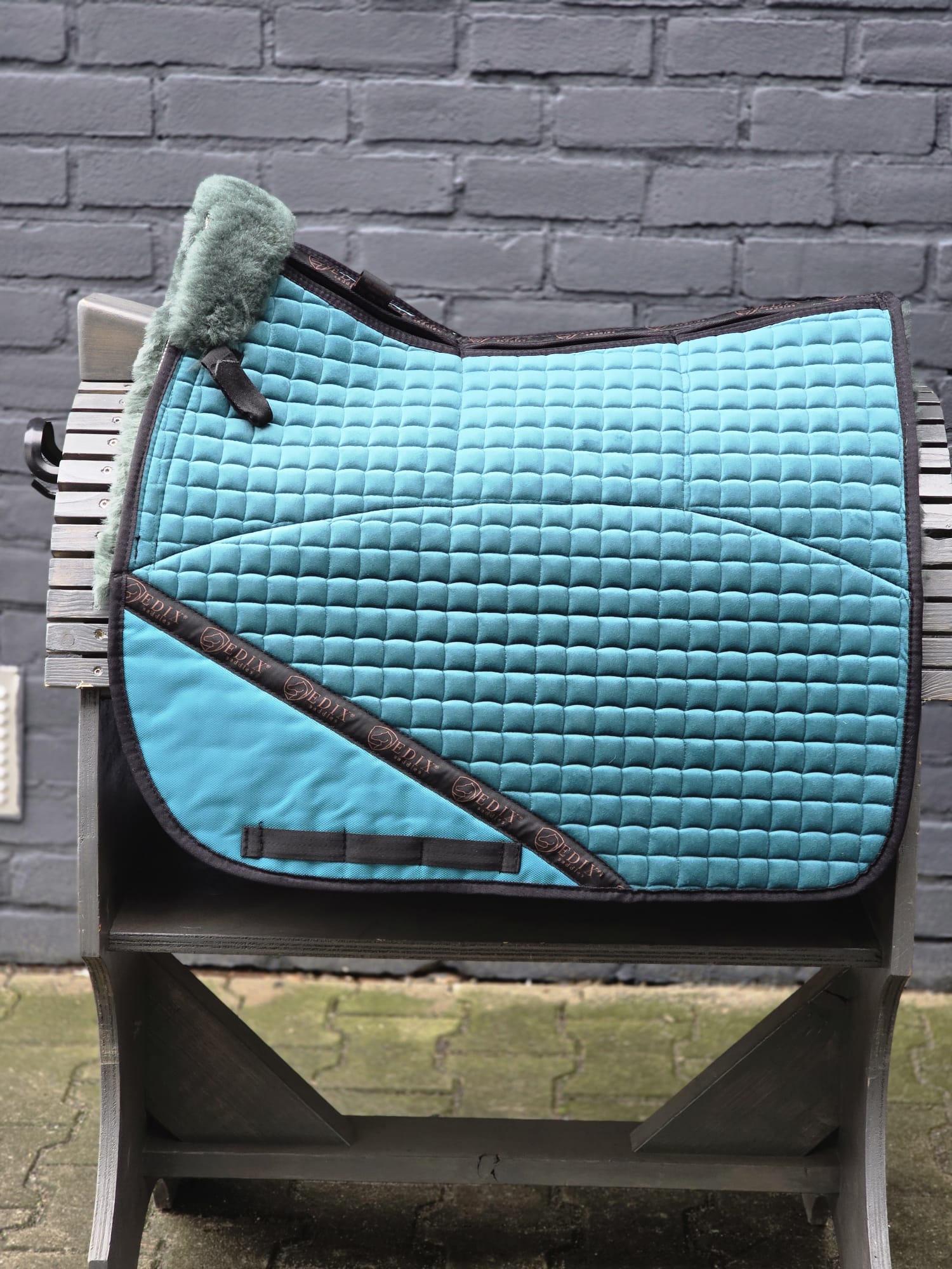 De basis heeft een bontkraag voor extra zachtheid rondom de schoft en is anatomisch gevormd. Aan beide zijden van de rug zijn op de bovenzijde 2 grote en 3 kleine vakken voor inzetstukken, allemaal voorzien van vilten inzetstukken. Uiteraard kan, indien gewenst, een ander type inzetstuk worden gekozen. Omdat de pad 8 inzetvakken heeft, kan hiermee de positie van het zadel worden verbeterd of extra druk worden verdeeld. Op de plek waar het been van de ruiter tijdens het rijden wrijft, is een nylon versterking aangebracht om slijtage te voorkomen. Hoogwaardig Merinowol is technisch gezien nog steeds een van de meest geavanceerde materialen ter wereld. Omdat de volledige lamsvacht wordt gebruikt in plaats van geschoren en geweven wol, worden de voordelen van dit natuurlijke materiaal optimaal benut. Daarom adviseren wij het direct op de rug van het paard te gebruiken. Alle EDIX® Merino pads zijn voorzien van een nieuw ontworpen vrije rugkanaal van kort geschoren vacht, ontwikkeld om drukpunten te verminderen en optimale bescherming van de wervelkolom van uw paard te bieden. Daarnaast heeft de Merino vacht een groot oppervlak zodat de zadelpanelen volledig op de pad rusten. Hierdoor wordt transpiratie effectief naar buiten afgevoerd, terwijl tegelijkertijd de druk wordt verdeeld en schokken worden geabsorbeerd. De EDIX® dressage pads passen onder een breed scala aan dressuurzadels, en het 8-vaksysteem maakt de pad geschikt voor gebruik onder zowel boomloze als traditionele zadels.