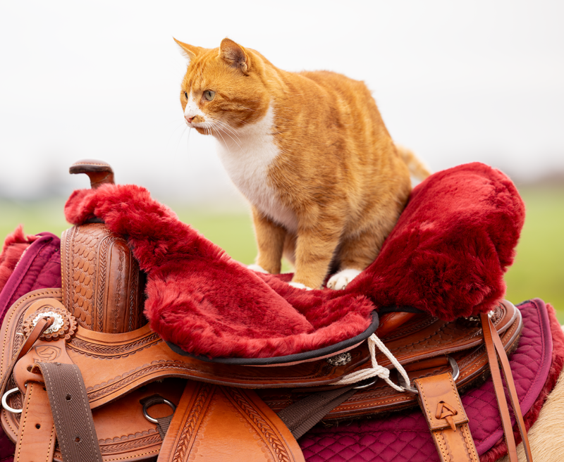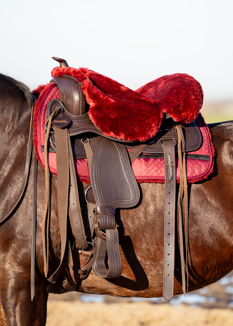 De Westernzitting is voorzien van een uitsnede voor de horn en aan de onderzijde zijn katoenen veters bevestigd, zodat de zitting gemakkelijk aan een Westernzadel te bevestigen is.